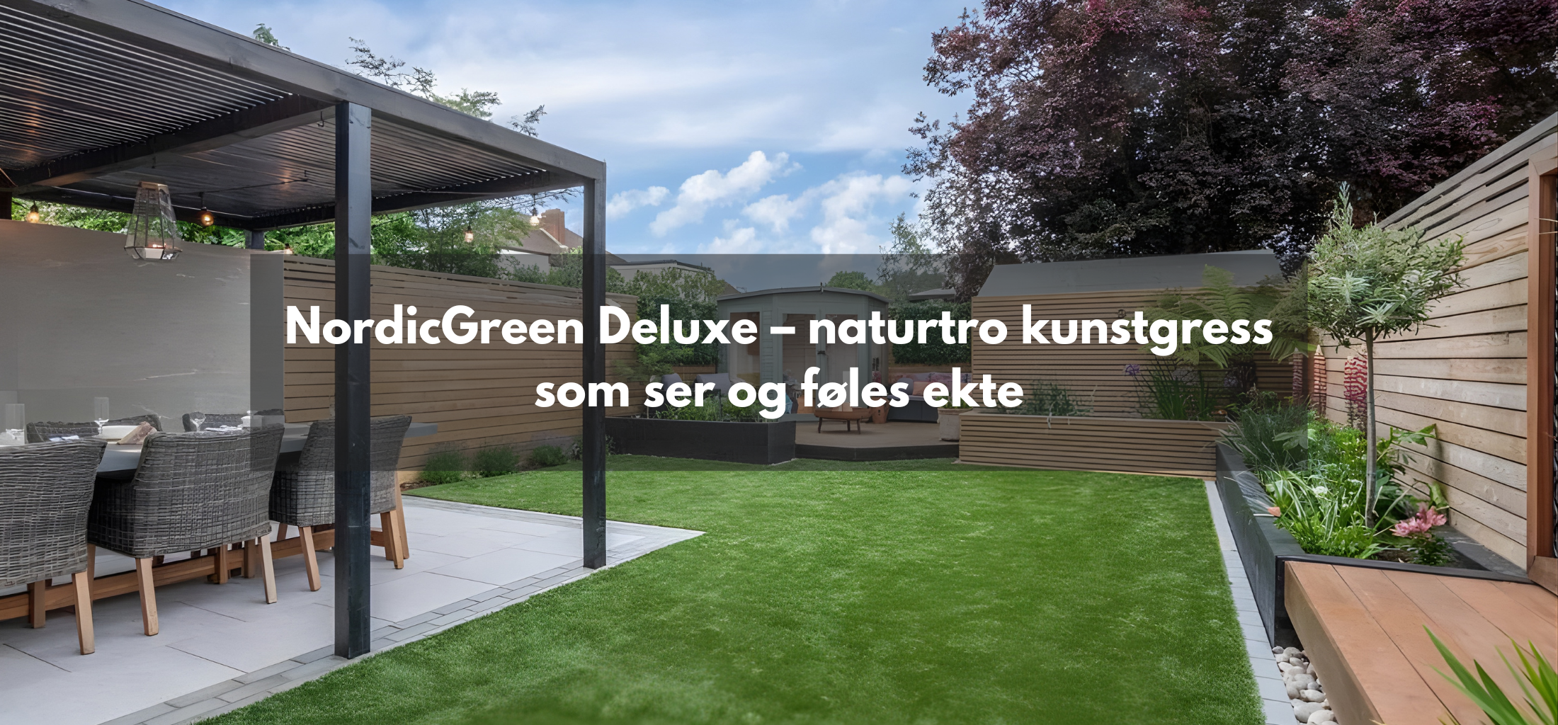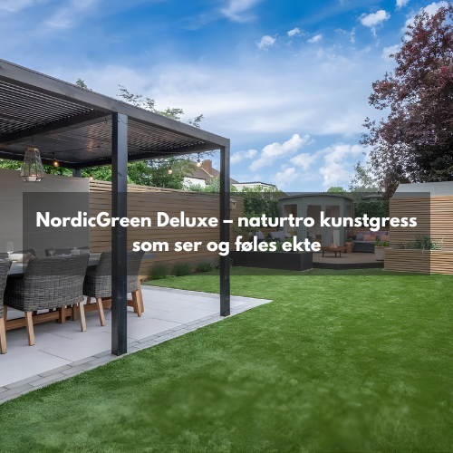 Våre produkter ser ekte ut, føles myke under føttene og tåler alt fra sol og regn til de hardeste stormene. NordicGreen Deluxe er markedets mest realistiske kunstgress – perfekt for deg som vil ha grønt og pent hele året.